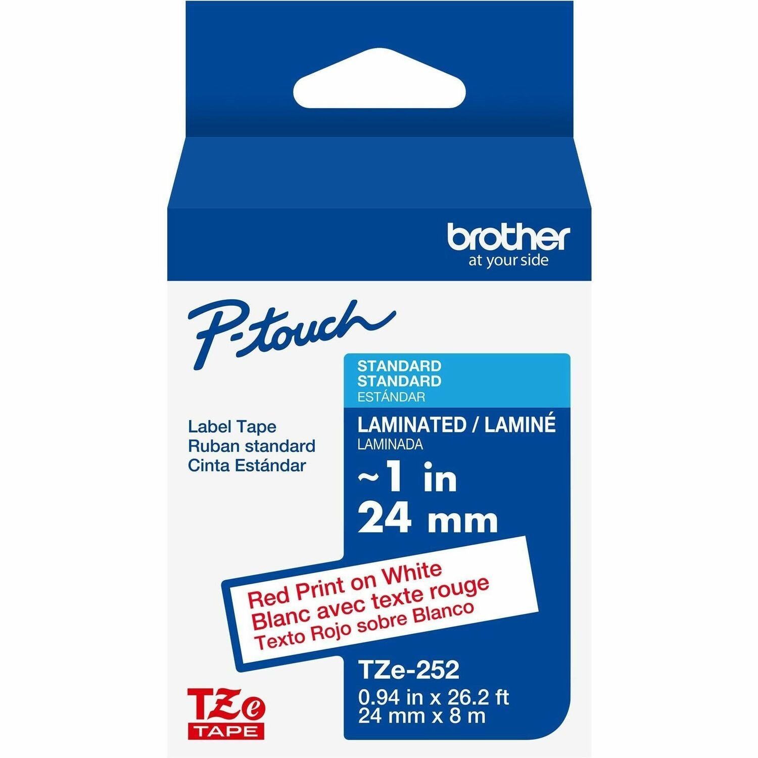 Brother Genuine P-touch TZe252 RD on WHT Label Tape, Laminated, 24mmX8m