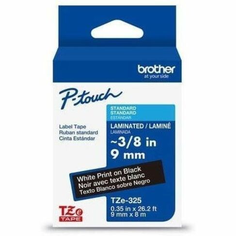 Brother Genuine P-touch TZe325 WHT on BK Label Tape, Laminated, 9mmX8m